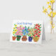 A Get Well Soon card with the greeting in Norwegian and a row of flowerpots of colourful flowers, from a handpainted paper collage by Judy Adamson. The inside is left blank for your own message and please contact me through my store if you'd like a different front cover greeting.