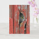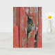 Grey tom cat peeking through a hole in rustic red barn wood for get well soon.