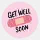 Design featuring a stylised pink bandage with a delicate white dotted texture to mimic medical adhesive. Text "GET WELL SOON" in bold black lettering.