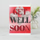 This invitation features a collection of white balloons over a red and white background displaying the words "Get Well Soon" with a red/black rose typograph style in this Get Well Soon theme. Printed on a classic, all around paper 17.5 pt thickness with an uncoated matte finish with an eggshell texture made and printed in the USA with "Get Well Soon" printed on the back.