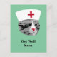 Get well soon! Cat in nurse cap. This kitty will assist you when you want to cheer a convalescent up by letting them know you care.