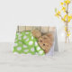 Fuzzy brown teddy bear under a green and white polka dot blanket for get well soon.