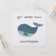 This funny card is the perfect way to wish that someone special a speedy recovery. The design features a cute whale with fun typography wording that says "get whale soon" and an example name which is easy to personalise. The back of the card is blank for you to hand write a personal message or you can add more typed wording or a photo of your choice by clicking the edit button.