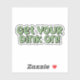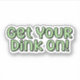 A fun typography design with the words "Get Your Dink On!" in a green retro font. This design makes a great gift idea for pickleball players!