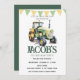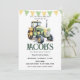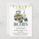 Great for any season. Let's build something fun for your little guy on his birthday! Green and yellow watercolor farm tractor graphic. Editable, customise, custom, personalised birthday party invite for kids, children, toddler parties.