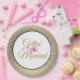 Party paper plate shown in a lovely Gold fine faux glitter print around the rim and White centre. Gettin' Married in a fancy script in centre with two Pink-coloured hearts.