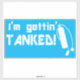 Funny sticker for scuba divers. I'm gettin' tanked! phrase. Blue and white funny quote sticker. For scuba divers, dive instructors, and anybody who likes getting tanked up.