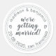 Chic and simple save the date label, with your names and wedding date in off-black modern typography on a kraft paper background, the text 'we're getting married' in stylish script calligraphy font and two little hand drawn hearts. Use these wedding stickers for your wedding gifts, gift bags or as a save the date envelope seal. Exclusively designed for you by Happy Dolphin Studio. If you need any help or matching products, please contact us at happydolphinstudio@outlook.com.