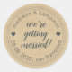 Chic and simple save the date label, with your names and wedding date in off-black modern typography on a kraft paper background, and the text 'we're getting married' in stylish script calligraphy font. Use these wedding stickers for your wedding gifts, gift bags or as a save the date envelope seal. Exclusively designed for you by Happy Dolphin Studio. If you need any help or matching products, please contact us at happydolphinstudio@outlook.com.