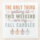 This humourous and cosy fall design features the witty phrase "The Only Thing Getting Lit This Weekend Are My Fall Candles" in a mix of bold and elegant fonts. The text is creatively arranged with varying font sizes and styles, adding visual interest and a playful tone. The colour palette includes warm autumn hues like burnt orange, earthy greens, and soft browns, which evoke the warmth and comfort of the season.