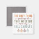 This humourous and cosy fall design features the witty phrase "The Only Thing Getting Lit This Weekend Are My Fall Candles" in a mix of bold and elegant fonts. The text is creatively arranged with varying font sizes and styles, adding visual interest and a playful tone. The colour palette includes warm autumn hues like burnt orange, earthy greens, and soft browns, which evoke the warmth and comfort of the season.