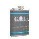 A fun design for older golfers, G.O.L.F. stands for 'Getting Older & Living Fine'. For an added touch of whimsy, the "O" is a golfball on a tee. This flask can be customised.