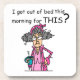 Getting Out of Bed Humour T-shirts, mugs, cards, stickers, bags, magnets, keychains, ornaments, mousepads, pillows, luggage tags, and other morning attitude apparel and gifts for anyone who isn't exactly a fan of waking up early! Stella in her pink nightgown and robe asks "I got out of bed this morning for THIS?".