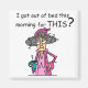 Getting Out of Bed Humour T-shirts, mugs, cards, stickers, bags, magnets, keychains, ornaments, mousepads, pillows, luggage tags, and other morning attitude apparel and gifts for anyone who isn't exactly a fan of waking up early! Stella in her pink nightgown and robe asks "I got out of bed this morning for THIS?".