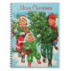 Merry Christmas Notebook with a very bright and colourful vintage Christmas image reminding one of their youth as we see happy, cheerful children getting the Christmas tree back to home after cutting it in the forest.