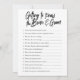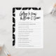 Getting to know the bride and groom - A fun shower game with questions about both the bride and the groom. A modern script for the title with a mid century pattern on the back.