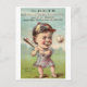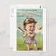 Vintage 1870s-1880s poster, retouched and restored by us. (blemishes, scratches, spots removed, grainy background original softened.) Description: Advertising trade card shows a small child with baseball bat about to attempt hitting a thrown baseball.
