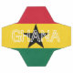 The flag of Ghana was designed to replace the flag of the United Kingdom upon attainment of independence in 1957. It was flown until 1959, and then reinstated in 1966. It consists of the Pan-African colours of red, yellow, and green, in horizontal stripes, with a black five-pointed star in the centre of the gold stripe. The Ghanaian flag was the first African flag after the flag of Ethiopia to feature these colours.