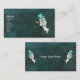 This business card has a white ghost floating in a dark bluish night sky with stars wearing a blue top hat and holding a fancy cane with gold skull. Customise your information on the front and back with the templates.