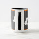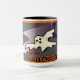 This design features a ghost flying at night with Happy Halloween printed in black and red. A floating ghost, floating through the air with eyes as black as coal. An orange border along with a black opaque. These mugs are available in assorted styles and sizes. Customise the way you want.