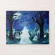 Halloween ghost in haunted graveyard puzzle. Art titled "Up after Flowers"
