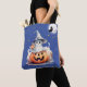 Under a Moonlit Sky: This tote bag features a captivating blue backdrop that perfectly captures the essence of a moonlit Halloween night. With a full moon shining brightly, you'll feel like you're taking a stroll through a haunted forest.