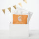 Spooky melty yellow moon on orange background and a cute spooky ghost. Perfect for a spooky cuteness Boo! Personalise the name of your baby boy for a Spooktacular Halloween 1st birthday party.