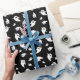 Wrap your gifts in spooky style with this Halloween wrapping paper featuring a playful pattern of simple white ghost silhouettes on a black background. The minimal black and white design adds a modern, festive touch to any seasonal gift.