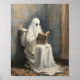 Ghost Reading a Book Vintage Halloween Bathroom Poster