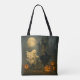 Charming Halloween artwork of two cheerful ghosts riding a bicycle at night, surrounded by pumpkins and glowing under the full moon. Perfect for T-shirts, tote bags, stationery, and Halloween gifts.