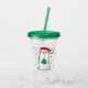 Cute ghost holding a Christmas tree and wearing a Santa hat with snowflakes in the background