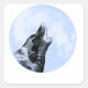 A ghost wolf howling to the winter moon. An unusual and unique design showing the full moon in the sky with stylised stars.