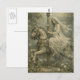 Ghost Woman on Abandoned Carousel Horse in Garden Postcard