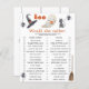 Featuring cute watercolor of baby ghost and Halloween aesthetics. A little boo is almost due! Halloween themed baby shower with watercolor ghost, black cat, witch's hat, magic mop ( broomstick ), spider hanging from a web. The little ghost is eating a lollipop.