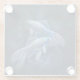 Atmospheric, ghostly image of two fish in cloudy water on a glass coaster.
