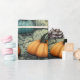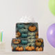 This design features a captivating blend of pumpkins in a variety of warm orange and cool teal hues, set against a cracked, moonlit background. The pumpkins are arranged in a layered pattern, intertwined with dark, twisted vines that create a sense of depth and texture. Some of the pumpkins are carved into jack-o'-lanterns with glowing, mischievous grins, while others remain uncarved, adding contrast and variety to the composition. The muted tones of the background enhance the vibrant colours of the pumpkins, giving the overall design a slightly eerie yet whimsical feel.