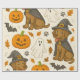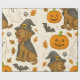 This playful Halloween design features an adorable brown puppy dressed as a witch, complete with a pointy black hat and matching cape. Surrounded by glowing jack-o’-lanterns, floating ghosts, fluttering bats, paw prints, and autumn leaves, the scene blends spooky charm with heartwarming cuteness. Perfect for dog lovers and Halloween fans alike, it captures the magic of the season in a fun, family-friendly style. 🎃👻🐾✨