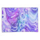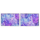 Bold purple and blue swirls create a marbled ink effect on a white background.