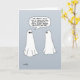 2 ghosts talking. One of them is musing that they're last date is 'ghosting' them. It is a funny, humorous, valentines day card.