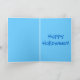 A fun and adorable Halloween ghost with a blue background and bright blue eyes.