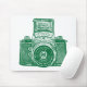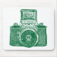 A Mouse pad with a high contrast, high passed filtered and vectorised image of a vintage East German camera from the 1950s. Creating a strong bold toothy retro screen print. or mediaeval Gothic brass rubbing like effect.