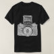 A t-shirt with a giant high contrast, high passed filtered and vectorised image of a vintage East German camera from the 1950s. Creating a strong bold toothy retro screen print. This version is light on dark and has a grainy negative like effect.