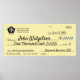 Giant presentation display or commemorative faux check for charity, employee bonus, or contest prize money giveaways, personalized with your choice of color scheme, your text, and company or organization logo.