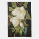 Giant Magnolias on a Blue Velvet Cloth (c. 1890) by Martin Johnson Heade is a vintage fine art Victorian Era floral still life painting. A large blooming white magnolia flower blossom in full bloom on a tree branch with leaves from the garden.