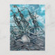 Giant Octopus Blue Sea Monster Sailboat Postcard