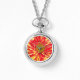 Watch in a closeup image of an aster flower, in shades of orange, with a golden yellow centre