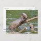 Giant otter (Pteronura brasiliensis) eating a fish on branch above water