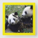 Giant Panda Bears Playing & Bamboo Eating (funny) Square Wall Clock