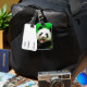 A luggage tag adorned with an artistic rendition of a Giant Panda.