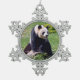Giant panda sitting on a stone snowflake pewter christmas ornament